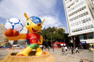 Mascote da Copa do Mundo 2014 é colocado em frente ao Mercado Público de Porto Alegre