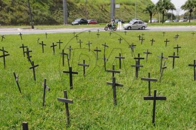 Cruzes em rodovia como protesto por morte não apuradas em Ipatinga