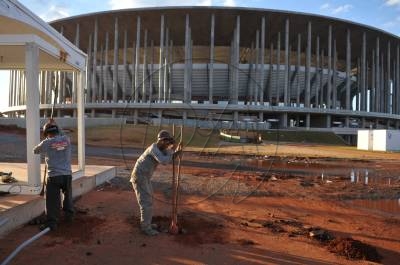 Últimos preparativos no Estádio Nacional para o jogo entre Flamengo e Santos