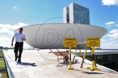 Obra na rampa no Congresso Nacional danificada por manifestantes