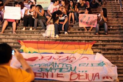 Movimento LGBTT realiza beijaço na escadaria da Praia Grande