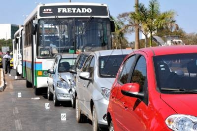Acidente de trânsito entre dois ônibus e quatro carros, na L2 Norte