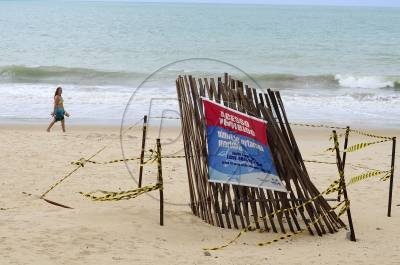 Ninho de tartaruga marinha abandonado, na praia de Boa Viagem