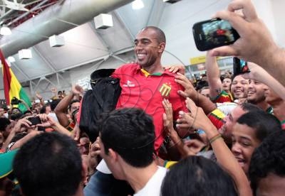 Time do Sampaio Corrêa é recebido com festa em aeroporto após classificação