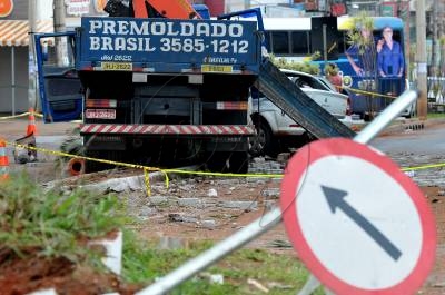 Caminhão desgovernado atinge três carros e atropela uma mulher em São Sebastião - DF
