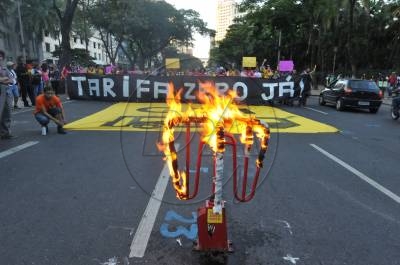 Protesto em frente a Prefeitura de Belo Horizonte por tarifa zero.