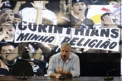 Coletiva de imprensa do Corinthians no CT Joaquim Grava