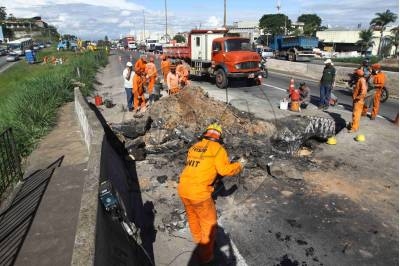Cratera interdita uma pista do Anel Rodoviário, em Belo Horizonte
