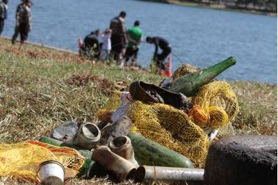 Polícia Militar Ambiental faz operação para limpeza na Orla do Lago