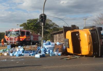 Caminhão carregado de Leite Tomba na via L4 Sul