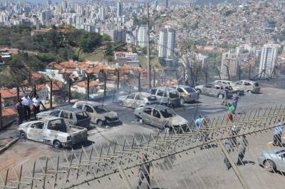 Incêndio de grandes proporções atinge veículos e fecha a avenida Raja Gabaglia