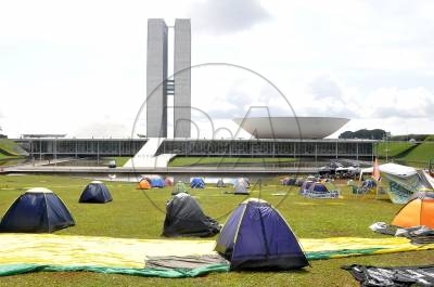 Manifestantes permanecem acampados em frente ao Congresso Nacional