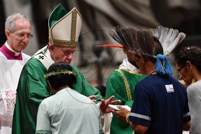 Representantes de grupo étnico da Amazônia participam de missa no Vaticano